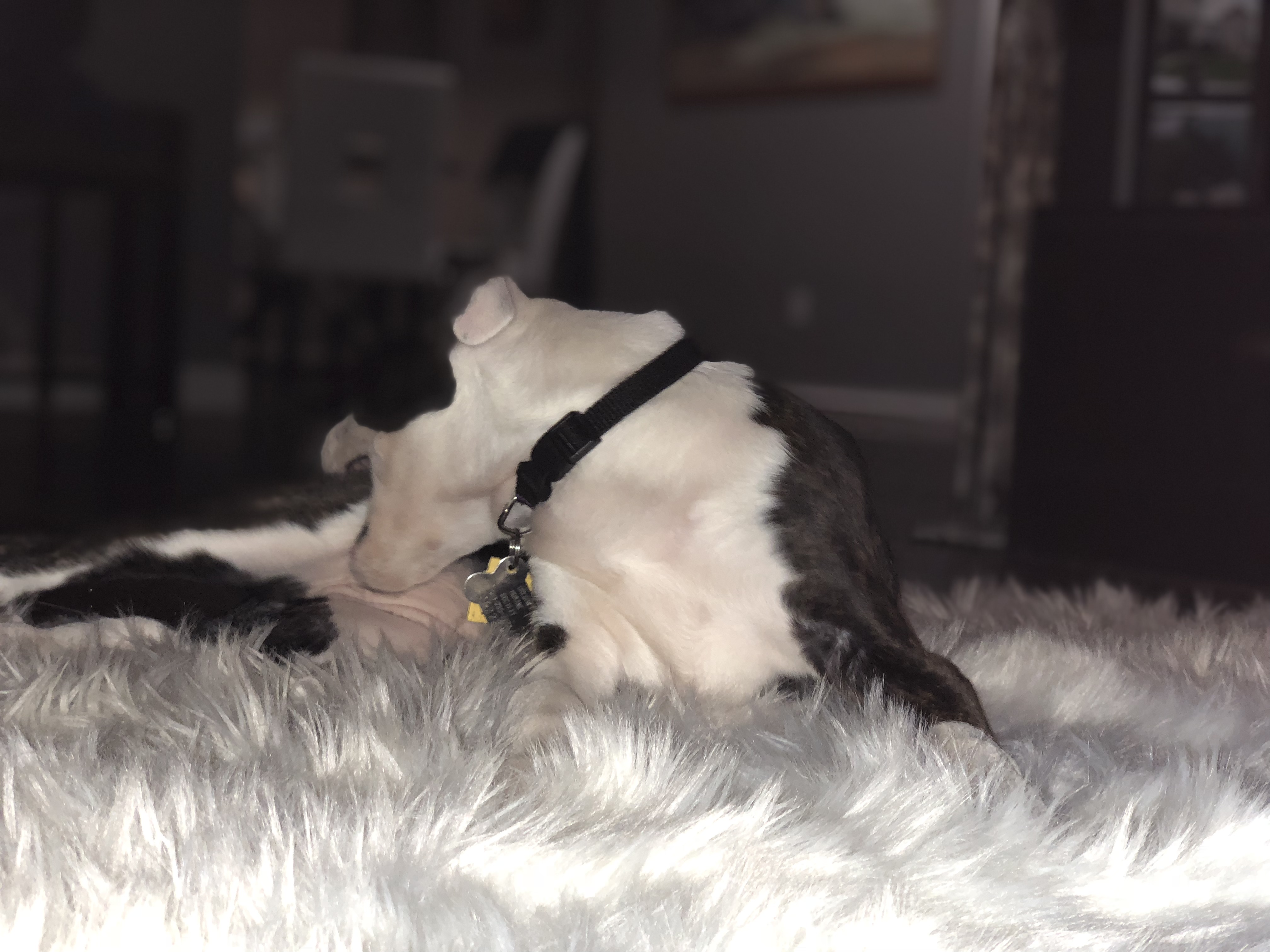 “We humans sleep during this time, young pupp’….” her tail wags. I’m sleepy mad.