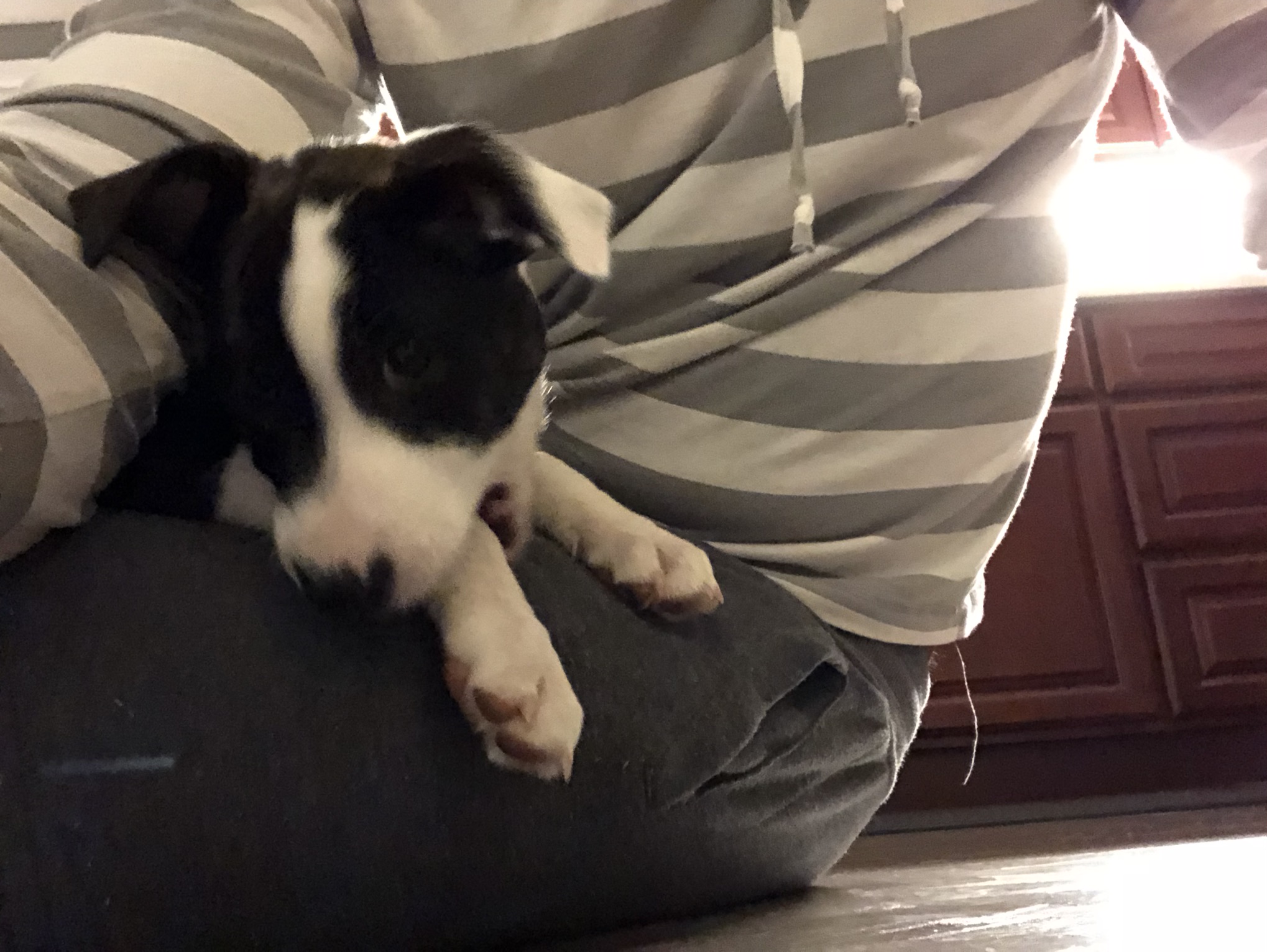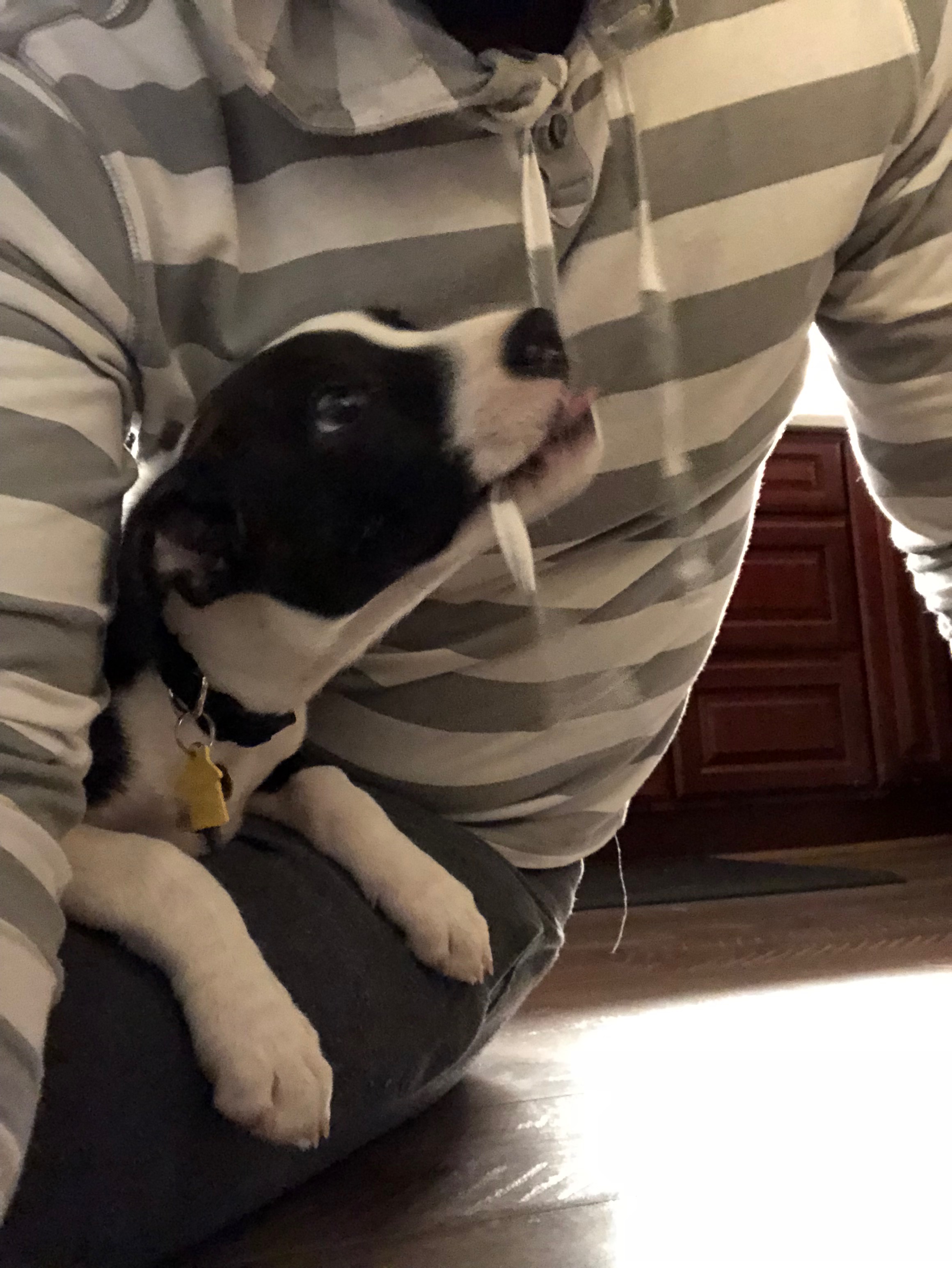 I’m talking about my puppy now, who’s untrained to potty on her own, or hold it without a whining tone.