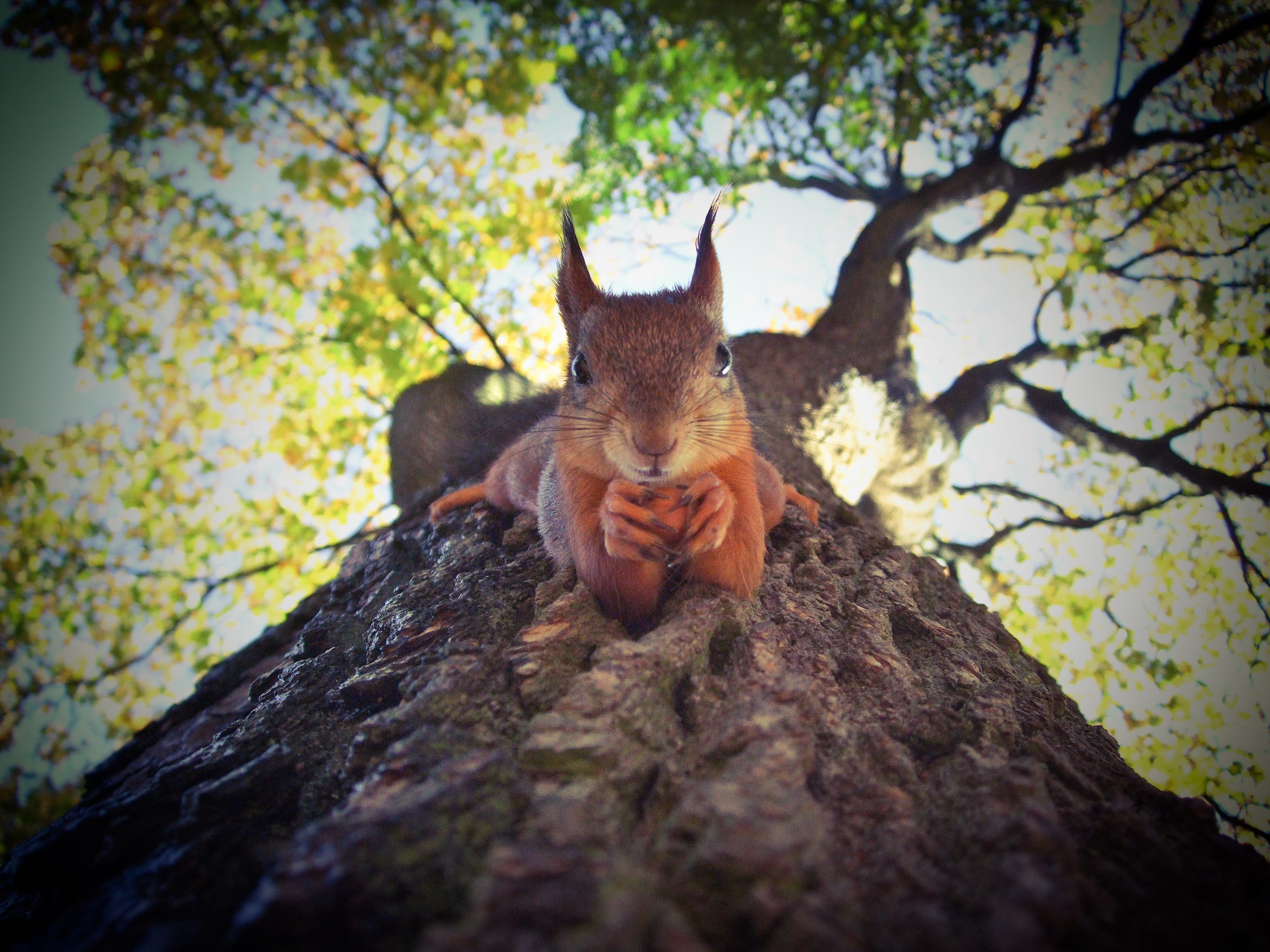 I was folding laundry on Friday and noticed a squirrel in the tree. I walked closer to my window and saw the squirrel looking directly at me. As I set t-shirts and socks in my drawer, it perched on a branch observing my every motion.